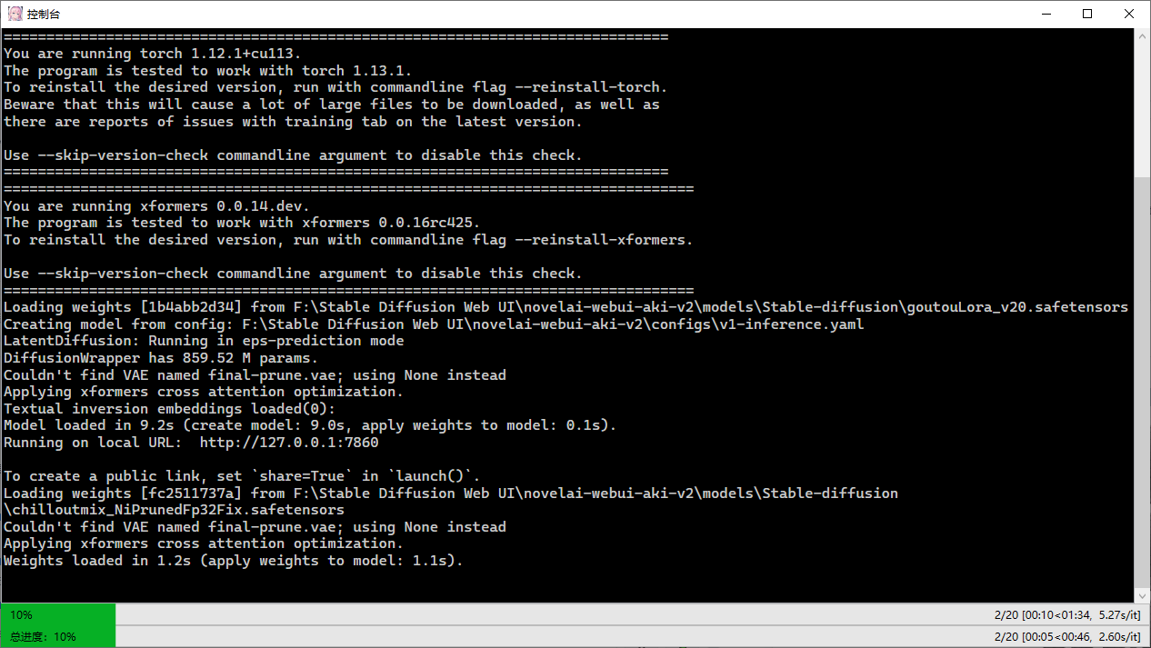 如需使用其他浏览器,可以在浏览器输入“http://127.0.0.1:7860”访问网页程序。
