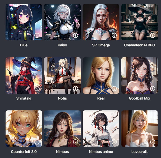 2、选择喜欢的模型“Model”,这个是AI绘画的灵魂所在,Yodayo目前集成了80多款模型可供选择,后续应该还会继续增加。