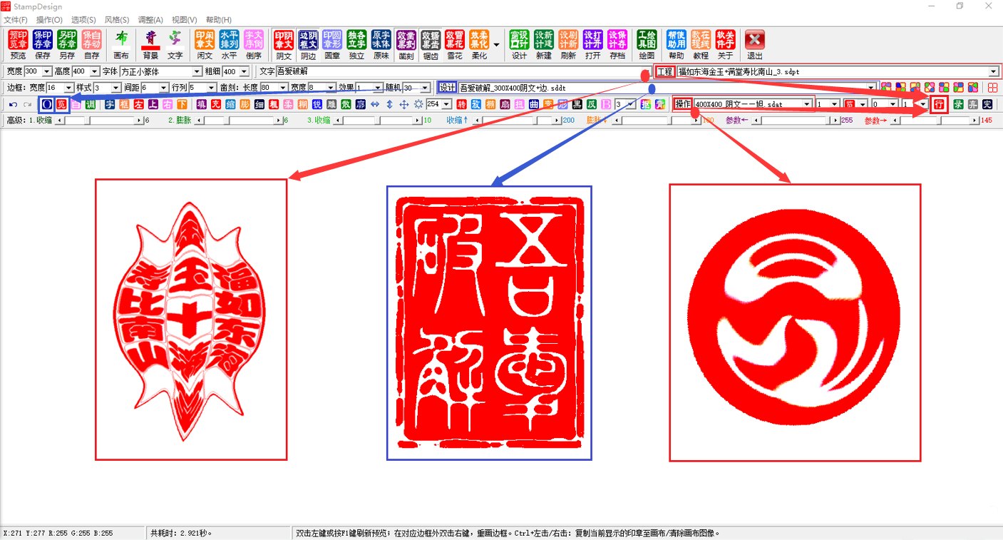 3、功能强大:印章设计模块,可调整任意一个文字的位置、大小、字体、旋转 、变形、局部缩放等,可设计出别具个性特色的印章。