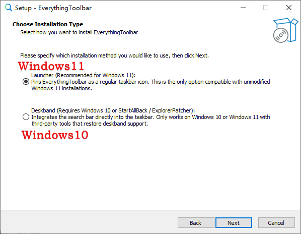 下载并运行EverythingToolbar小工具,安装时请根选择对应的系统版本。