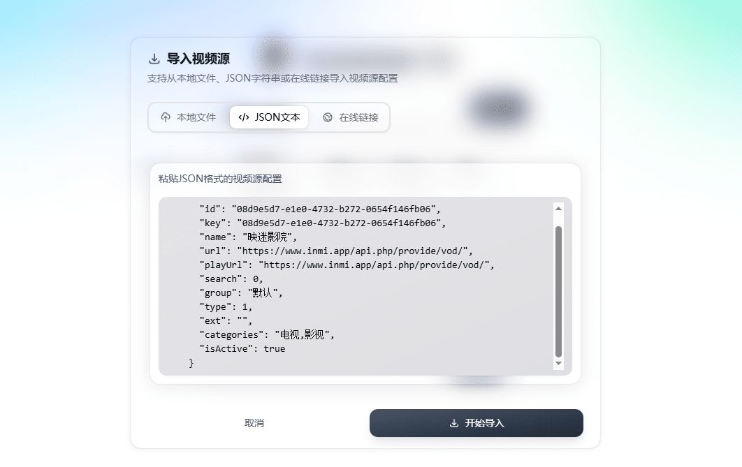 多源批量导入:支持拖拽文件、粘贴JSON文本及远程URL三种导入方式,灵活高效。
