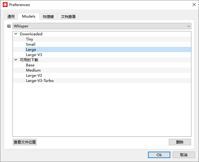 首次使用时,Buzz会自动下载所需的Whisper模型,并存储在本地缓存目录。或者可在偏好设定中下载合适的模型。