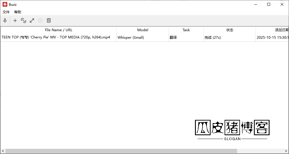 打开Buzz界面后,在主窗口点击「+」按钮添加单个或多个音频文件(支持MP3、WAV、M4A等常见格式)。