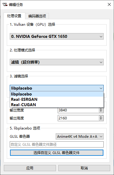 超分辨率提供三个滤镜模式,不知道选啥就用Real-ESRGAN,libplacebo模式的优势是支持自定义分辨率。