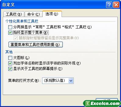 虽然现在使用excel2010的朋友有很多,但是因为excel2003的经典,许多人还是停留在excel2003中,我们在使用excel2003的时候,excel的菜单选项有很多,很多的菜单都不能完整的显示出来,只是记住了用户的常用选项,今天我们来了解下通过设置自定义项让EXCEL菜单完整显示的方法。