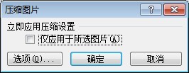步骤3 若只对选择的图片进行压缩,则需要单击“仅应用于所选图片”复选框,打开“√”标记;若要对文档中的所有图片进行压缩,则直接单击“确定”按钮。如图2所示。