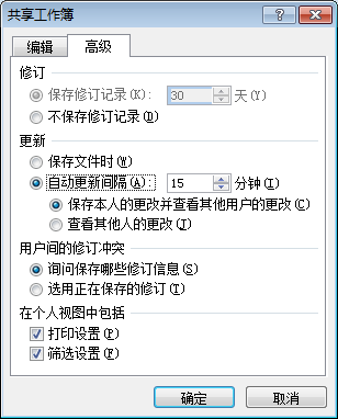 步骤3 单击“高级”选项卡,然后在“更新”区域中单击选择相应的单选项,设置共享工作簿修订属性,最后单击“确定”按钮,如图3所示。