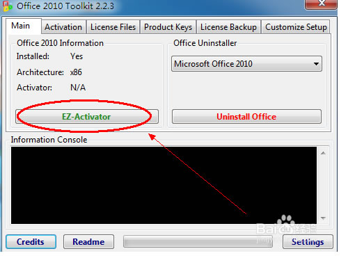 2、运行office 2010 toolkit,按“ez-activator” 按钮一键激活