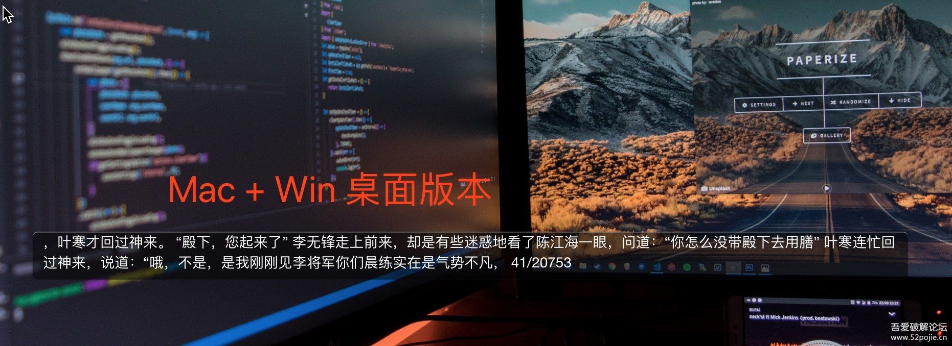 一款可以在任务栏、桌面、TouchBar、idea上进行摸鱼的跨平台摸鱼神器,支持小说、股票、按键翻页、鼠标翻页、自动翻页,让你体验不同的摸鱼乐趣,上班族必备!!