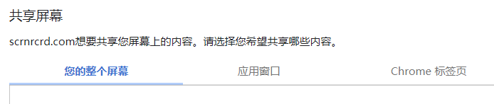 点击RECORD(录制)按钮,会弹出一个对话框,询问你是要录制您的整个屏幕,还是录制单个应用窗口,还是录制Chrome标签页。