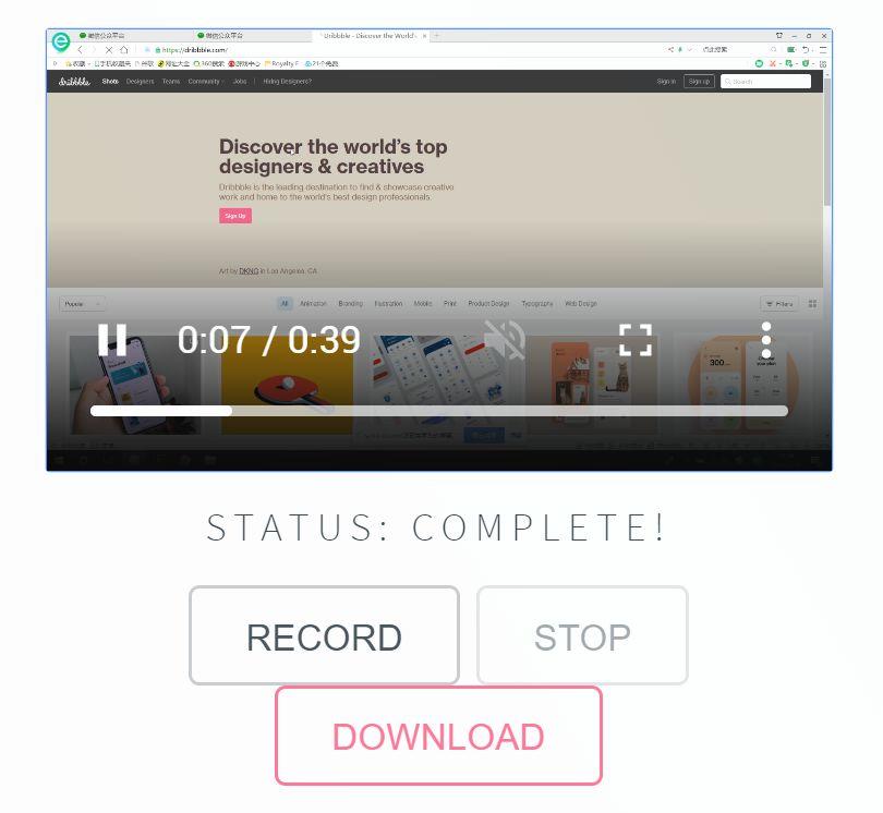 操作起来也很简单,就三个按钮:RECORD(录制)、STOP(停止录制)、DOWNLOAD(下载)。