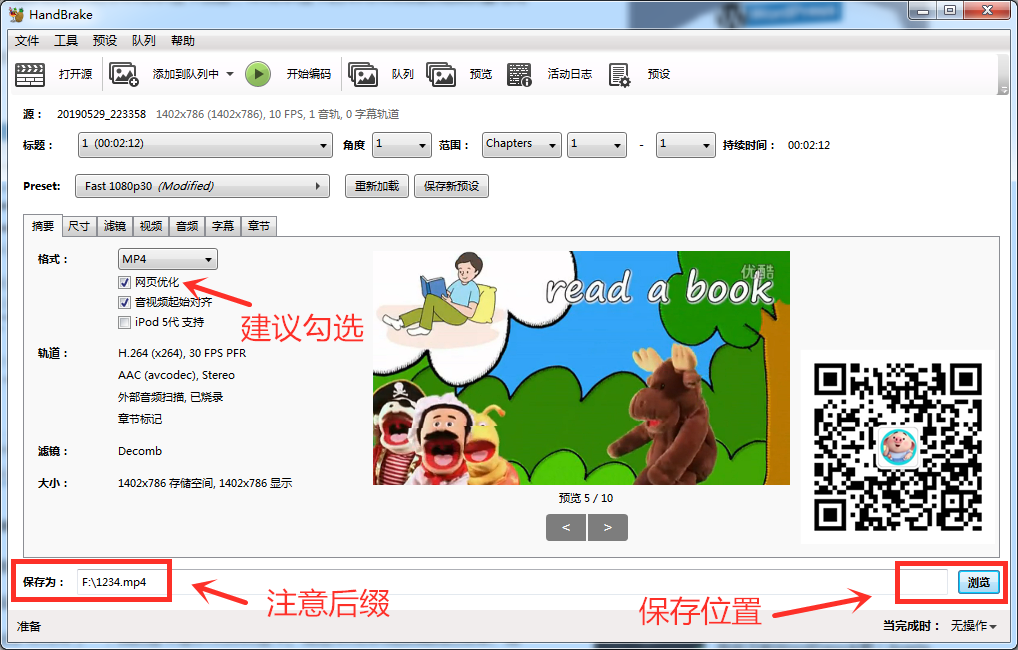 打开视频文件后,建议勾选上“网页优化”选项;